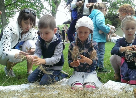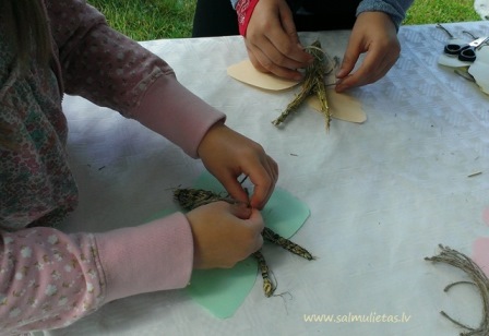 Radošajā salmu darbnīcā mācam izgatavot salmu zaķēnus uz kociņa.